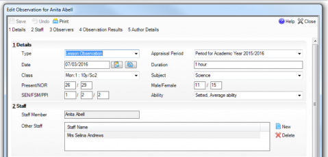 Integration with SIMS Personnel allows school leaders to quickly and easily record staff performance alongside training and employment details, and to measure performance against professional standards already held in SIMS - building a complete picture of every member of staff.