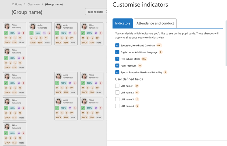 Display key pupil-level UDFs – such as medical needs or intervention groups – directly in Class View.