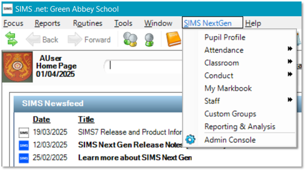 Access SIMS Next Gen directly from SIMS7