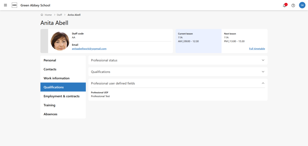 You can now view User Defined Fields (UDFs) that are created in SIMS 7 in Staff Profiles, giving you the flexibility to view the data your school needs.