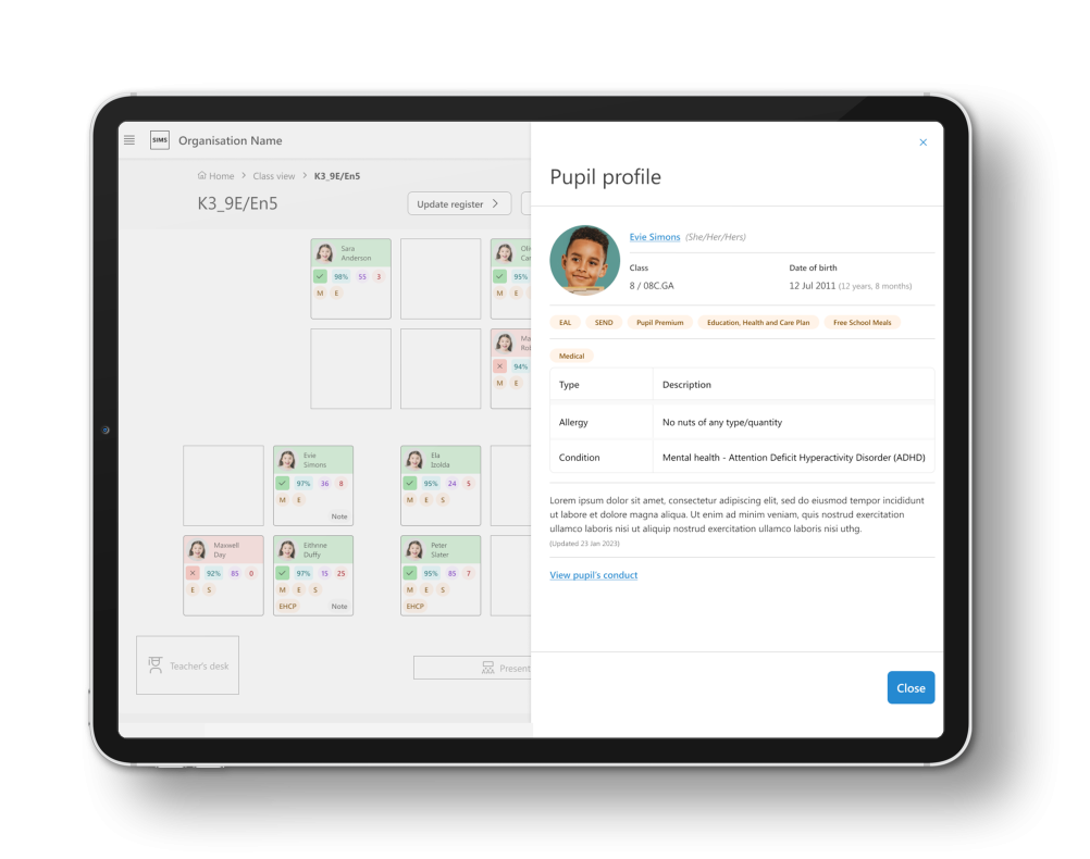 With indicators for attributes like English as an Additional Language (EAL), Pupil Premium, or SEND, Class View ensures that crucial information is always accessible. This helps teachers tailor their approach to meet each student’s unique needs, fostering a more inclusive and supportive environment.